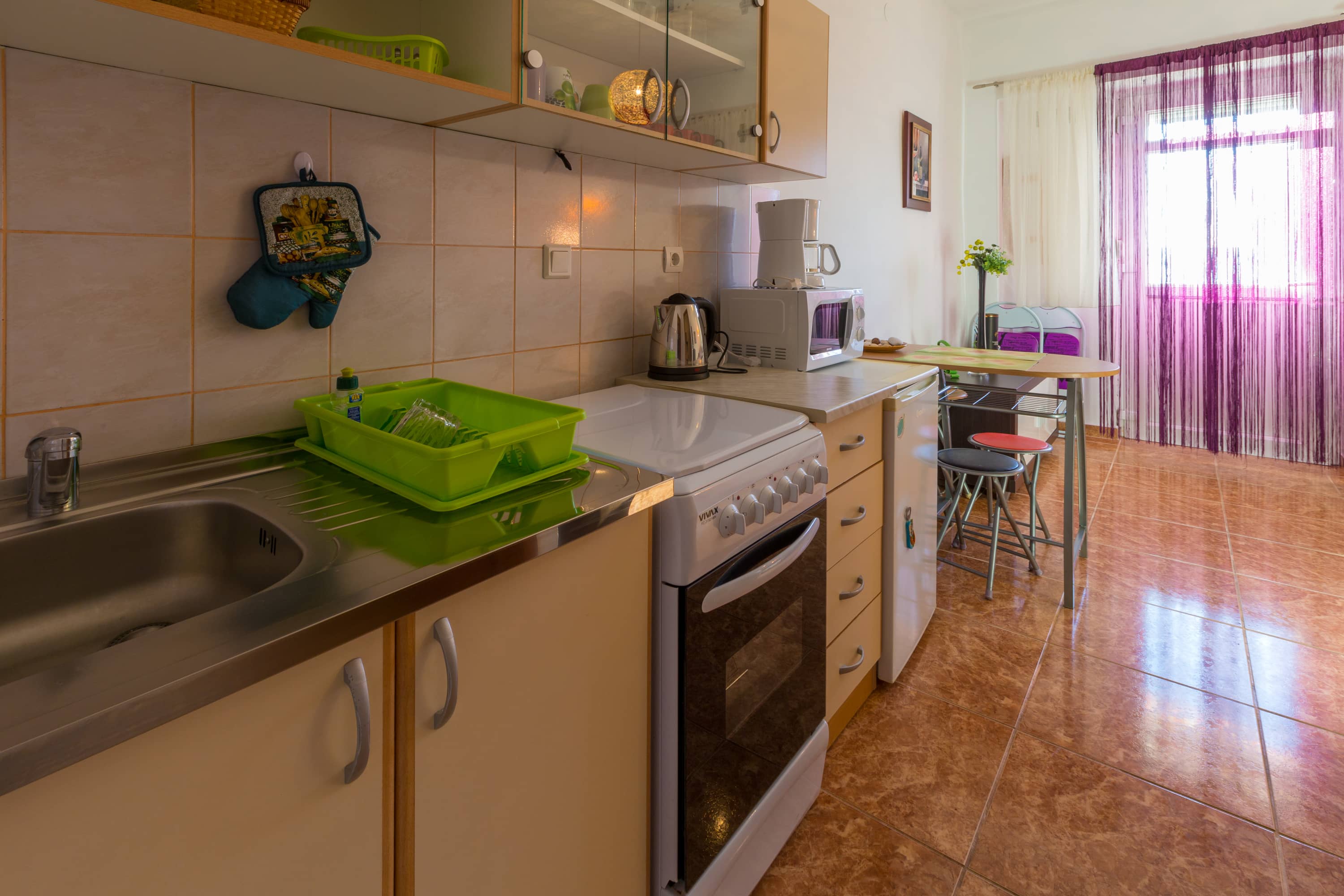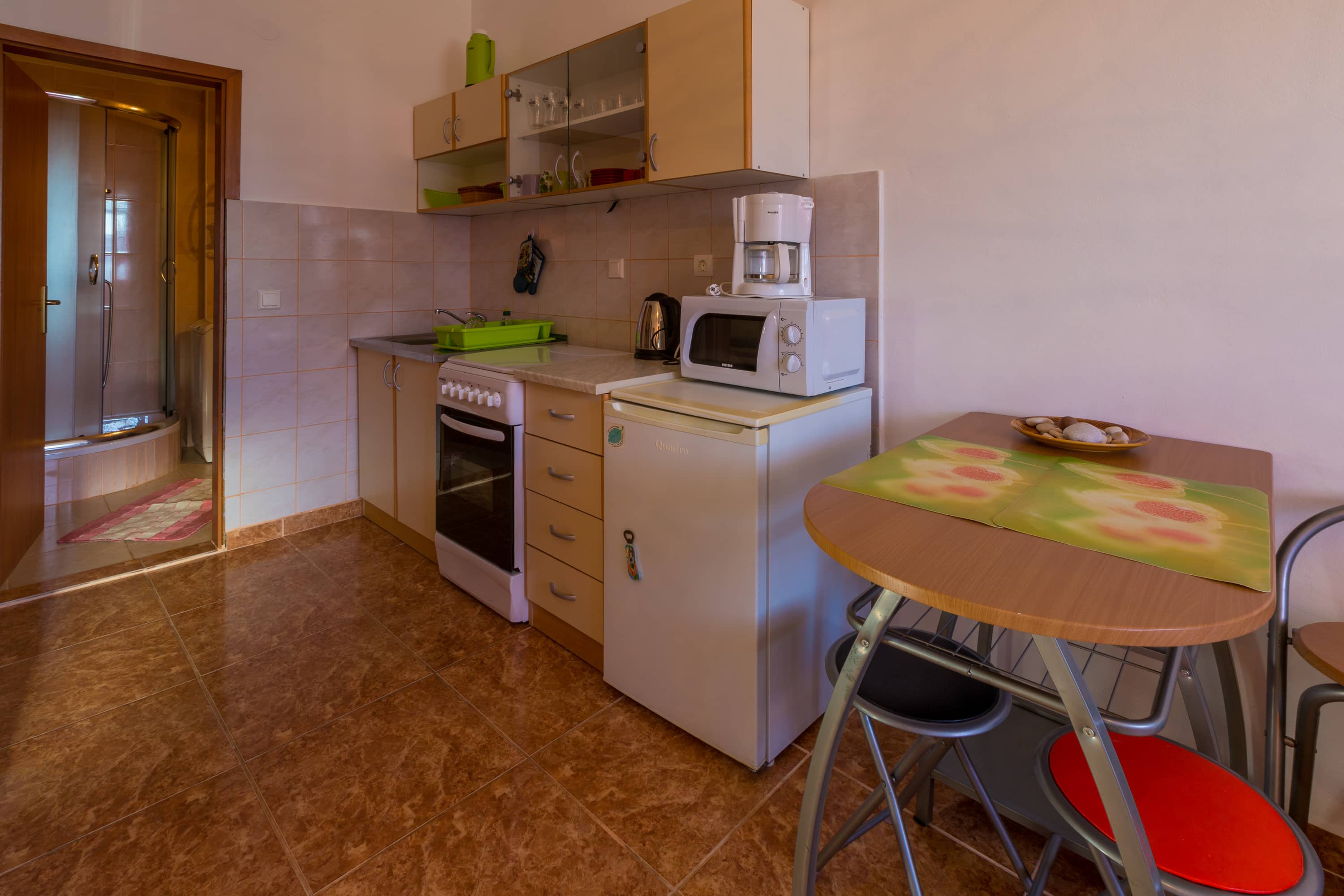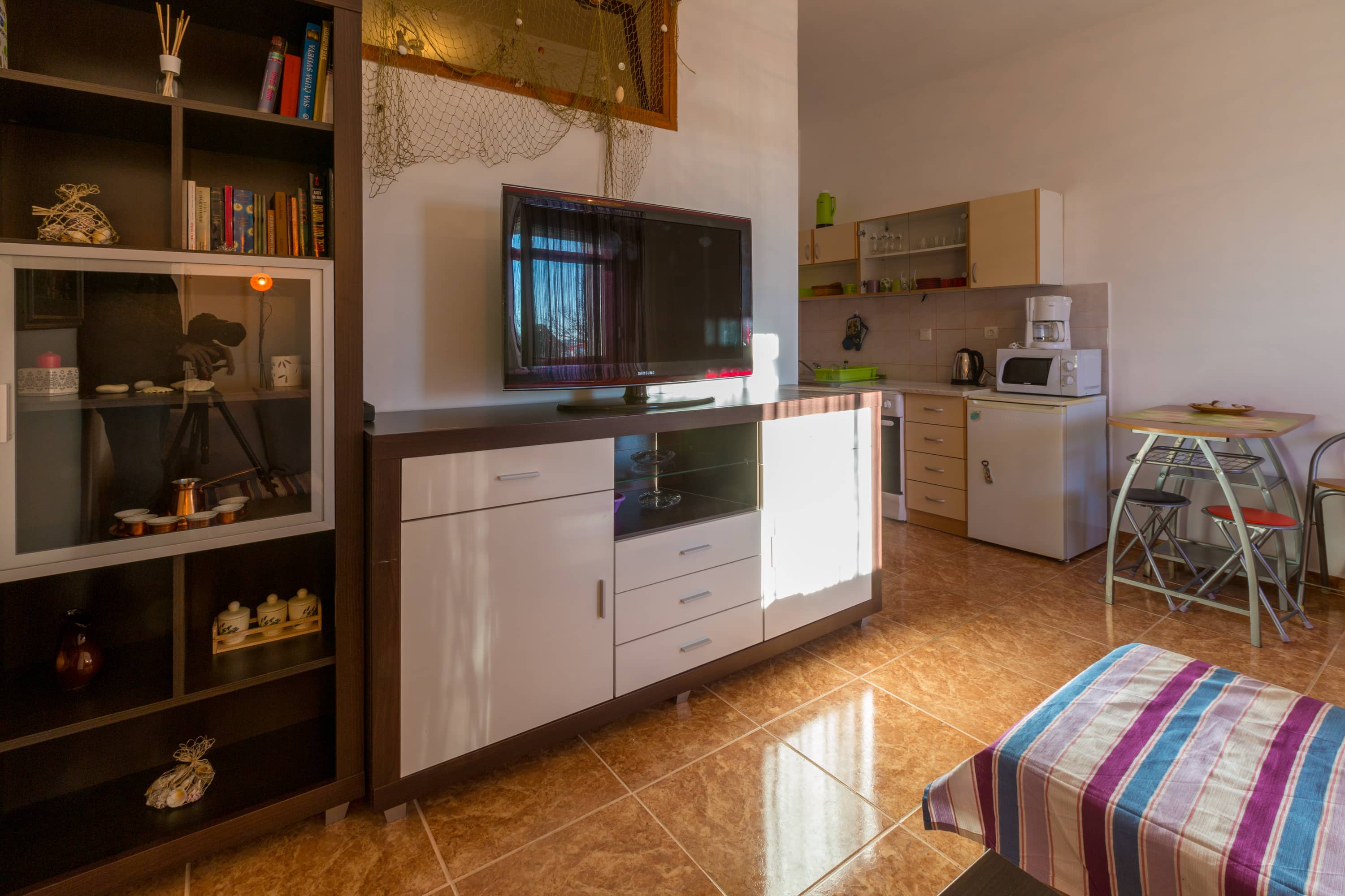 U stambenom naselju, na samom ulazu u Crikvenicu, oko 800 m udaljen od centra grada i gradske buke, nalazi se apartman od 35m2. U blizini, 150 m dalje, je mali market s osnovnim namirnicama i higijenskim potrepštinama. Plaža je udaljena svega 400 m, a nedaleko je i maleno igralište za djecu.