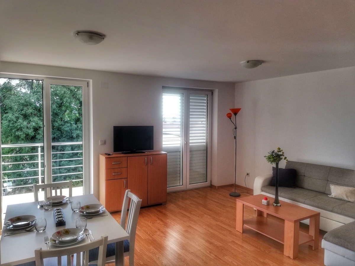 Centar grada udaljen je oko 300m, gdje se nalaze razni restorani, pizzerie, noćni klub, trgovine, banke, tržnica, igrališta za djecu, kulturne znamenitosti i brojni drugi sadržaji.